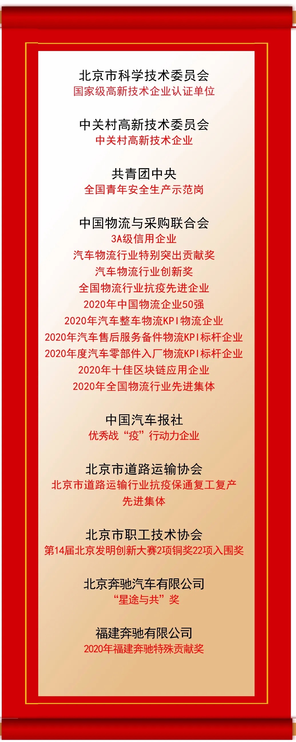 速度見證實力,進取締造輝煌。作為專業(yè)的供應鏈一體化物流服務商,中都物流多次以匠心品質(zhì)成功護航國家閱兵檢閱車運輸任務,獲得中國物流行業(yè)最具投資價值企業(yè)、汽車物流行業(yè)創(chuàng)新獎、汽車物流行業(yè)十年特別突出貢獻企業(yè)、北京市年度“交通安全先進單位、先進集體”等榮譽。2020年更是獲得了中國汽車企業(yè)戰(zhàn)“疫”行動力企業(yè)稱號,中都人正以自己的智慧與汗水,致力于成為科技驅(qū)動型智慧物流企業(yè),為客戶提供專業(yè)服務方案,為員工創(chuàng)造美好生活,為行業(yè)科學有序發(fā)展貢獻力量。
