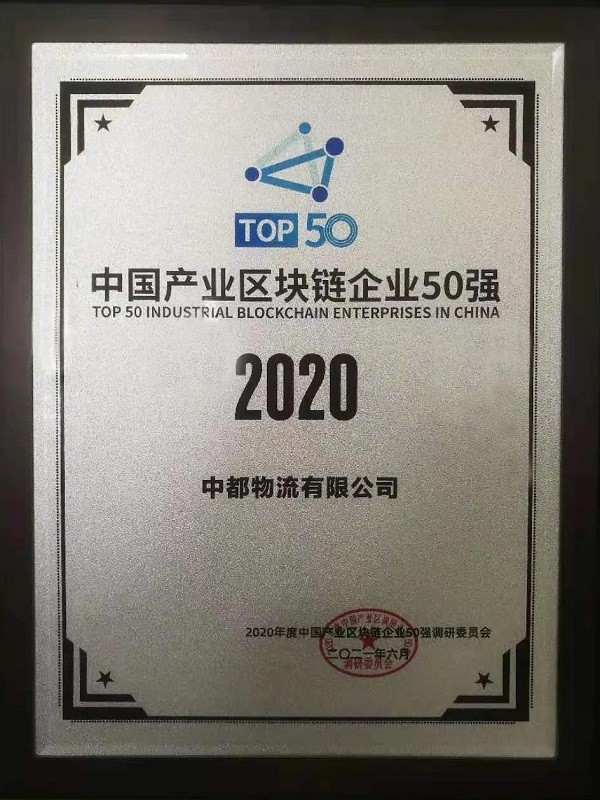 會議還公布了2020中國產(chǎn)業(yè)區(qū)塊鏈企業(yè)50強(qiáng),表彰為推動區(qū)塊鏈技術(shù)產(chǎn)業(yè)應(yīng)用落地做出突出貢獻(xiàn)的企業(yè),中都物流作為物流行業(yè)代表企業(yè)順利入圍。