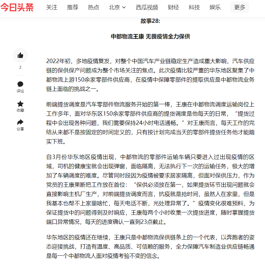 向千萬(wàn)物流人致敬!選出最打動(dòng)你的“疫”線物流人故事