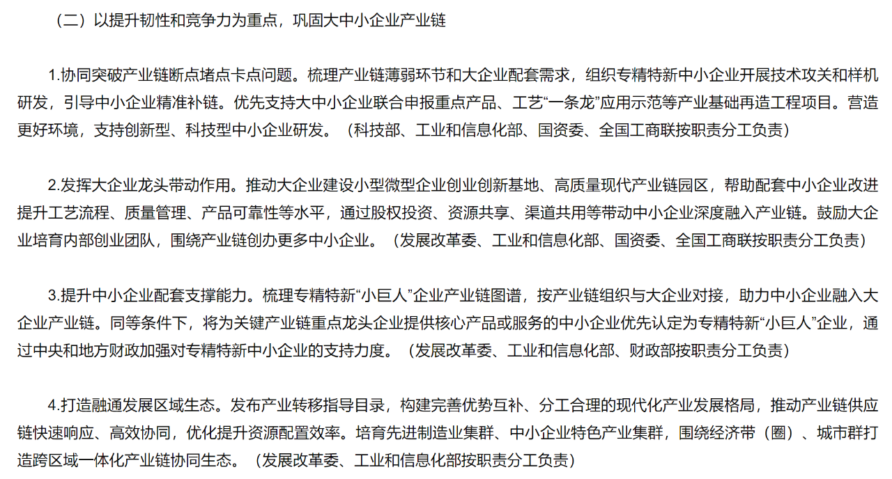 (二)產(chǎn)業(yè)鏈:以提升韌性和競(jìng)爭(zhēng)力為重點(diǎn),鞏固大中小企業(yè)產(chǎn)業(yè)鏈