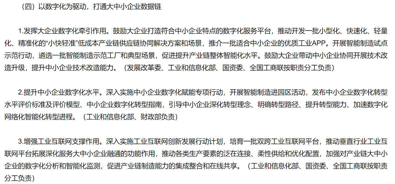 《攜手行動(dòng)》提到要發(fā)揮帶企業(yè)數(shù)字化牽引作用,提升中小企業(yè)數(shù)字化水平,增強(qiáng)工業(yè)互聯(lián)網(wǎng)的支撐作用。