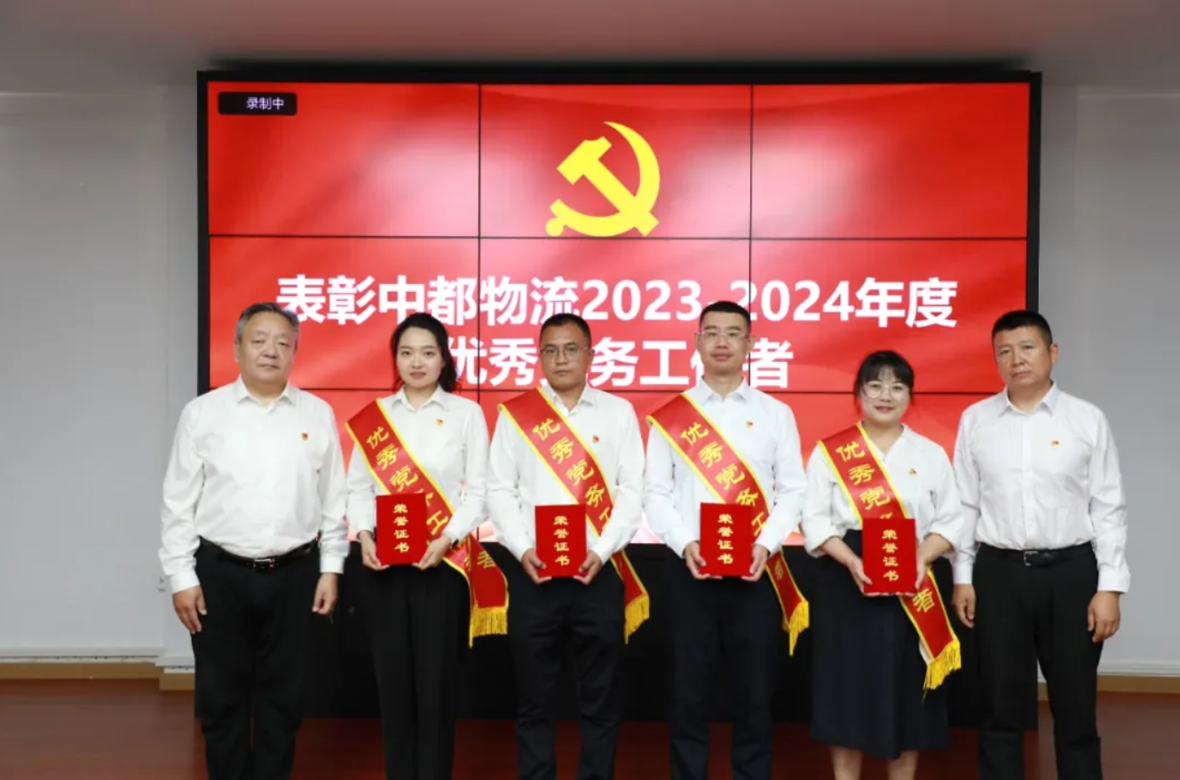 會議宣讀《關于表彰2023-2024年度先進基層黨組織、優(yōu)秀共產黨員、優(yōu)秀黨務工作者的決定》,大會授予中都星徽黨支部等3個基層黨組織“中都物流先進基層黨組織”稱號,授予劉昊等27名同志“中都物流優(yōu)秀共產黨員”稱號,授予王玉霜等7名同志“中都物流優(yōu)秀黨務工作者”稱號,樹立“向先進看齊,尊重榜樣,學習榜樣”的鮮明導向。京內受表彰的先進集體和個人出席大會,先進基層黨組織代表、優(yōu)秀共產黨員進行交流發(fā)言(完整名單附后)。